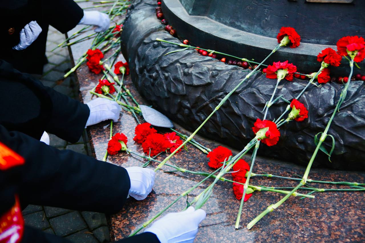 Кадеты возложили цветы к монументу и почтили память советских солдат, павших в годы Великой отечественной войны 1941–1945 годов.